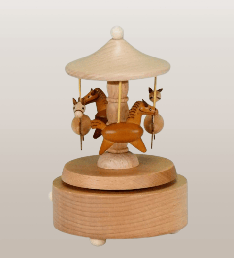 ✨ Urocza, ręcznie nakręcana pozytywka w formie karuzeli z konikami – piękna dekoracja i wyjątkowy dodatek do pokoju maluszka.