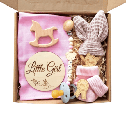 4. Gift Box na Baby Shower - Drewniany Gryzak i Zawieszka