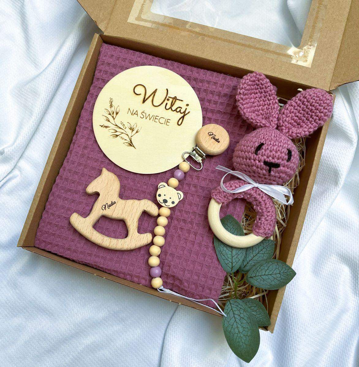 Spersonalizowany Gift Box Baby – Wyjątkowy Zestaw Prezentowy z Grawerem na Okazję Narodzin, Baby Shower, Chrztu, Pierwszych Urodzin i Więcej