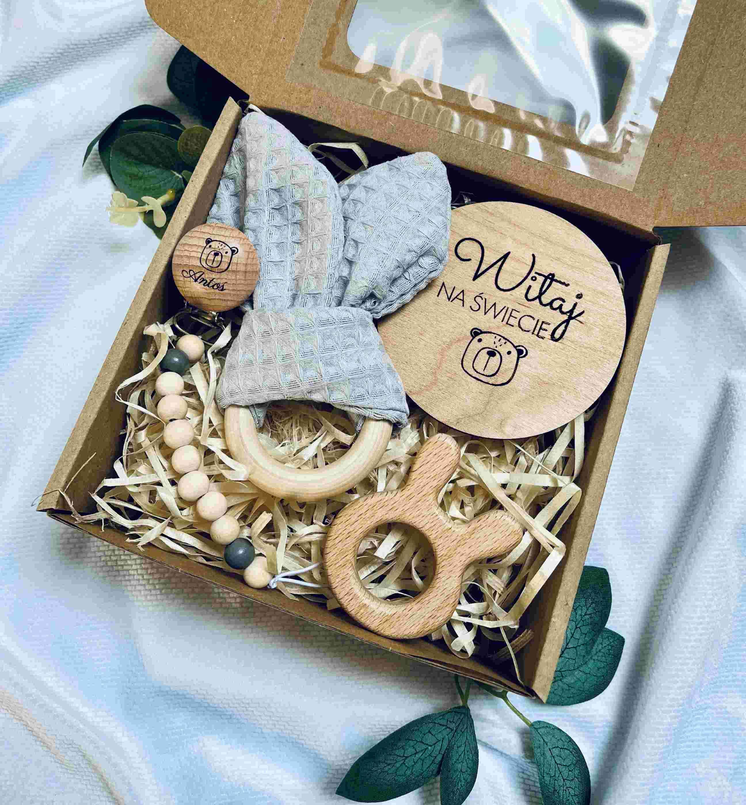 Wyjątkowy, personalizowany prezent na narodziny dziewczynki, baby shower, chrzest lub pierwsze urodziny (roczek). Starannie skomponowany i zapakowany w ekologiczne pudełko, gotowe do wręczenia.