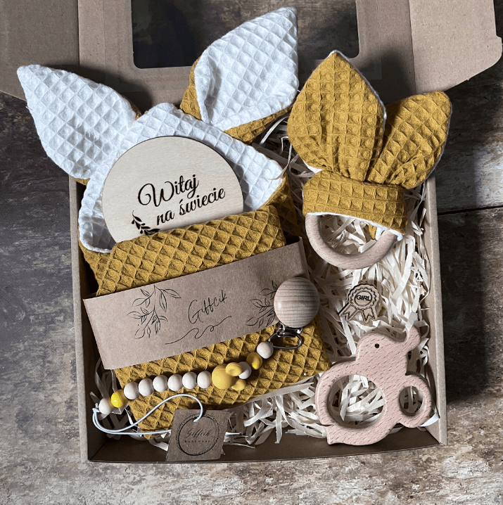 4. Prezent dla niemowlaka gift box Baby Shower noworodek wyprawka – zestaw wafelkowy