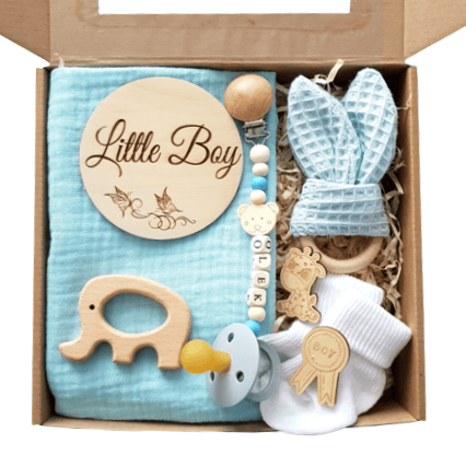 Zestaw dla niemowlaka, Baby gift box dla niemowlaka, Prezent dla noworodka, Zestaw prezentowy z okazji narodzin dziecka, Baby shower gift box, Prezent na baby shower, Zestaw upominkowy dla noworodka, Baby gift set, Zestaw startowy wyprawka dla niemowlaka.