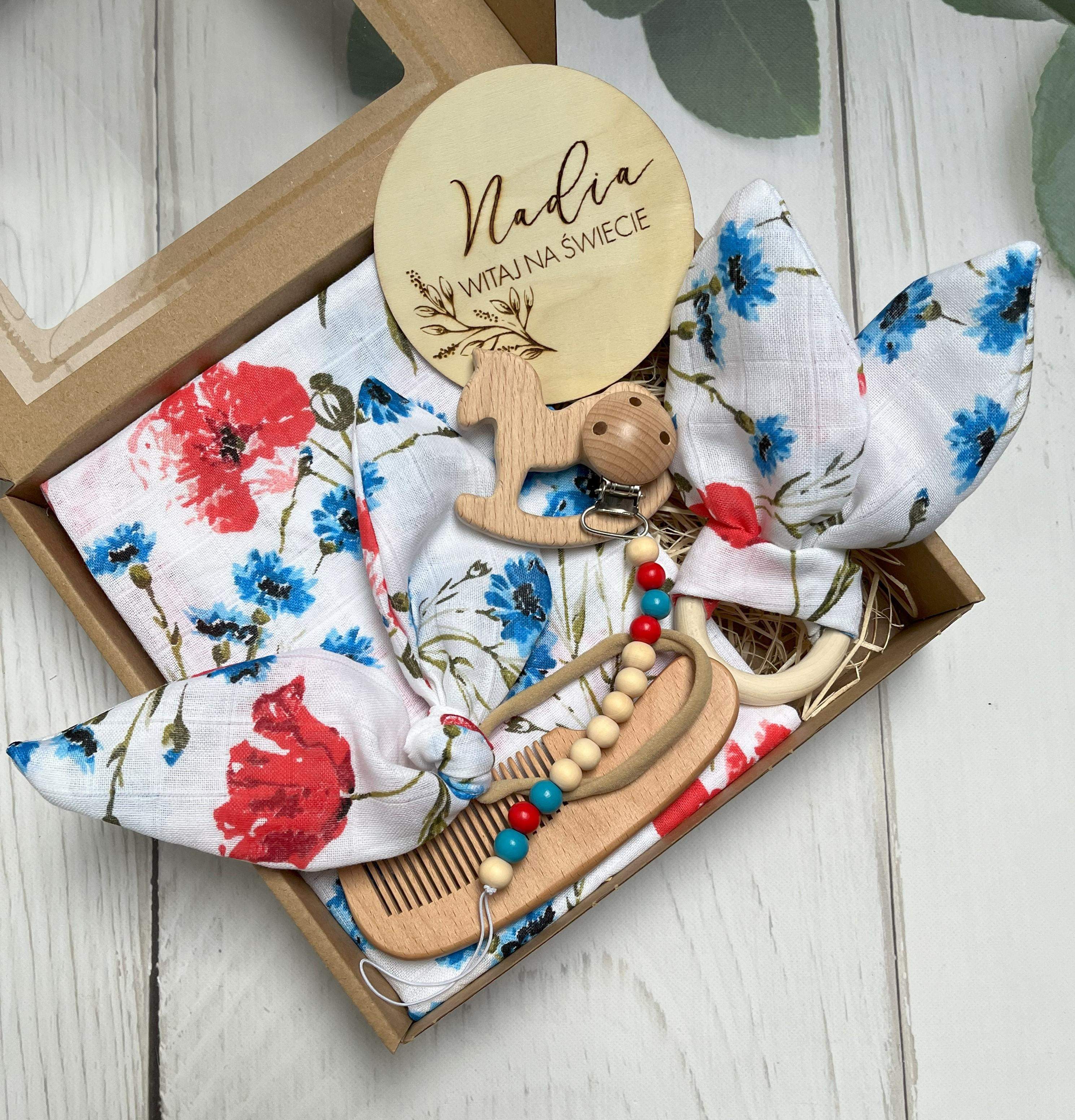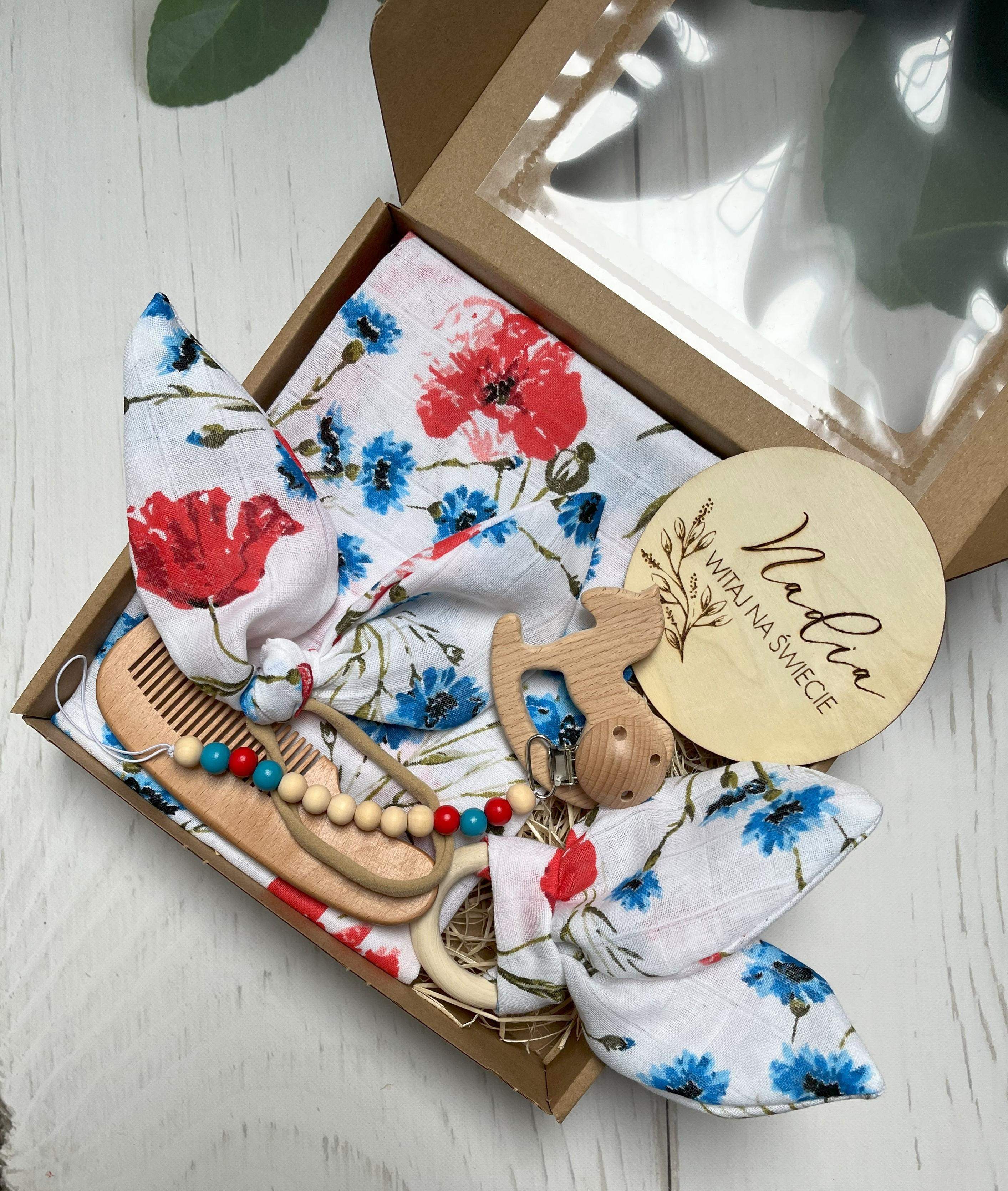 Zestaw Okolicznościowy Gift Box „Polne Maki” z okazji narodzin/baby shower.