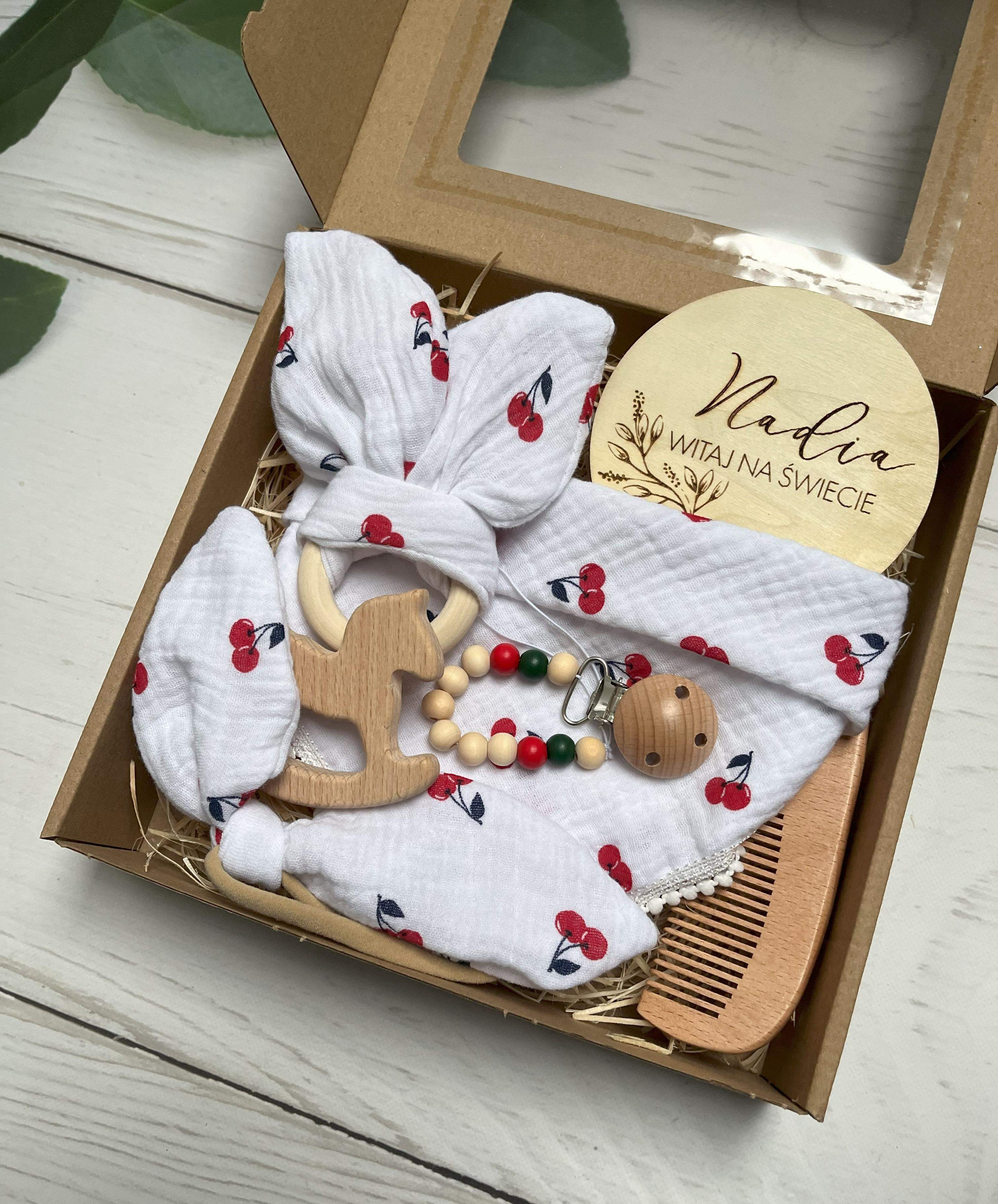 Zestaw Okolicznościowy WISIENKA dla Małej Dziewczynki – NARODZINY / BABY SHOWER / CHRZEST / ROCZEK – GIFT BOX BABY