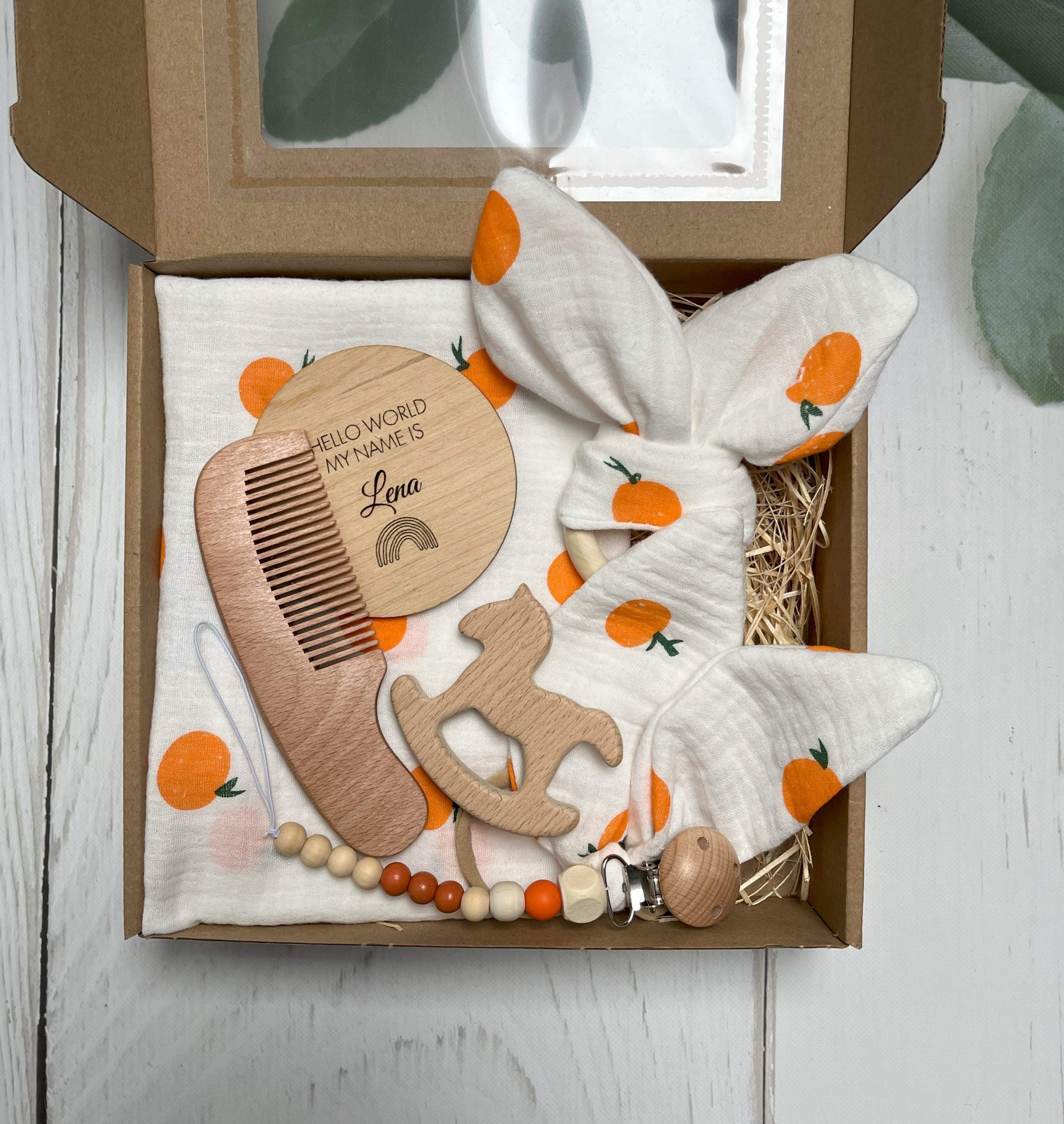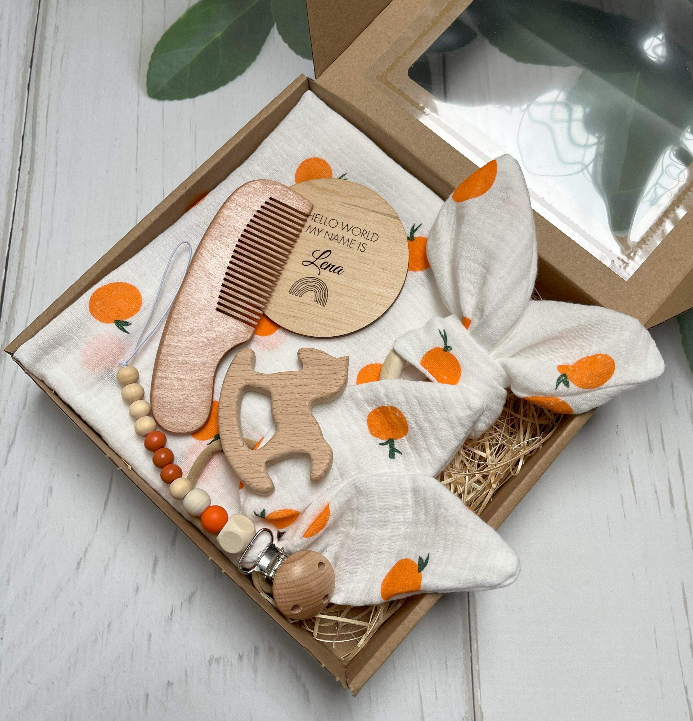 Zestaw Okolicznościowy Gift Box „Słodka Pomarańcza” z okazji narodzin/baby shower.