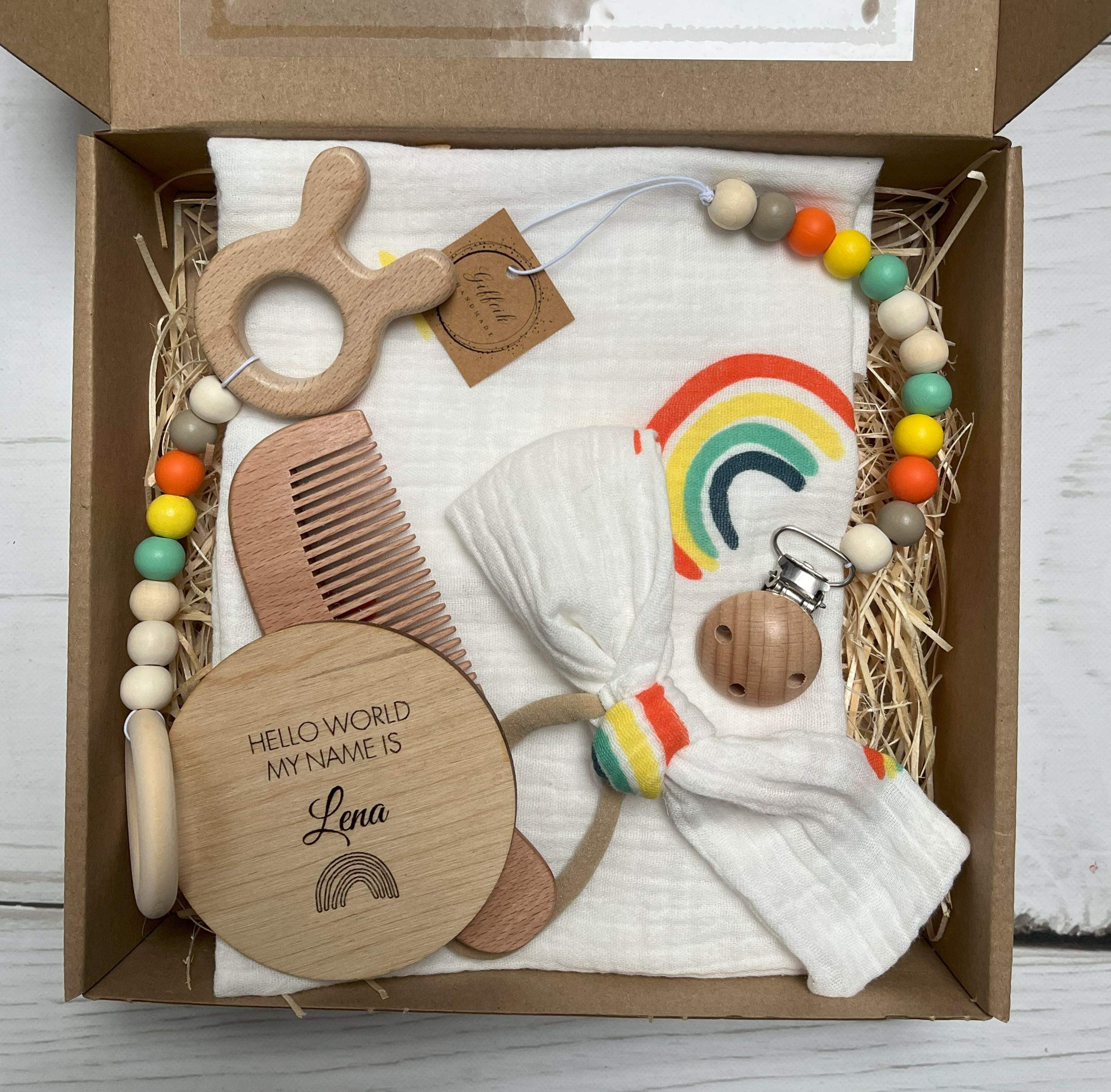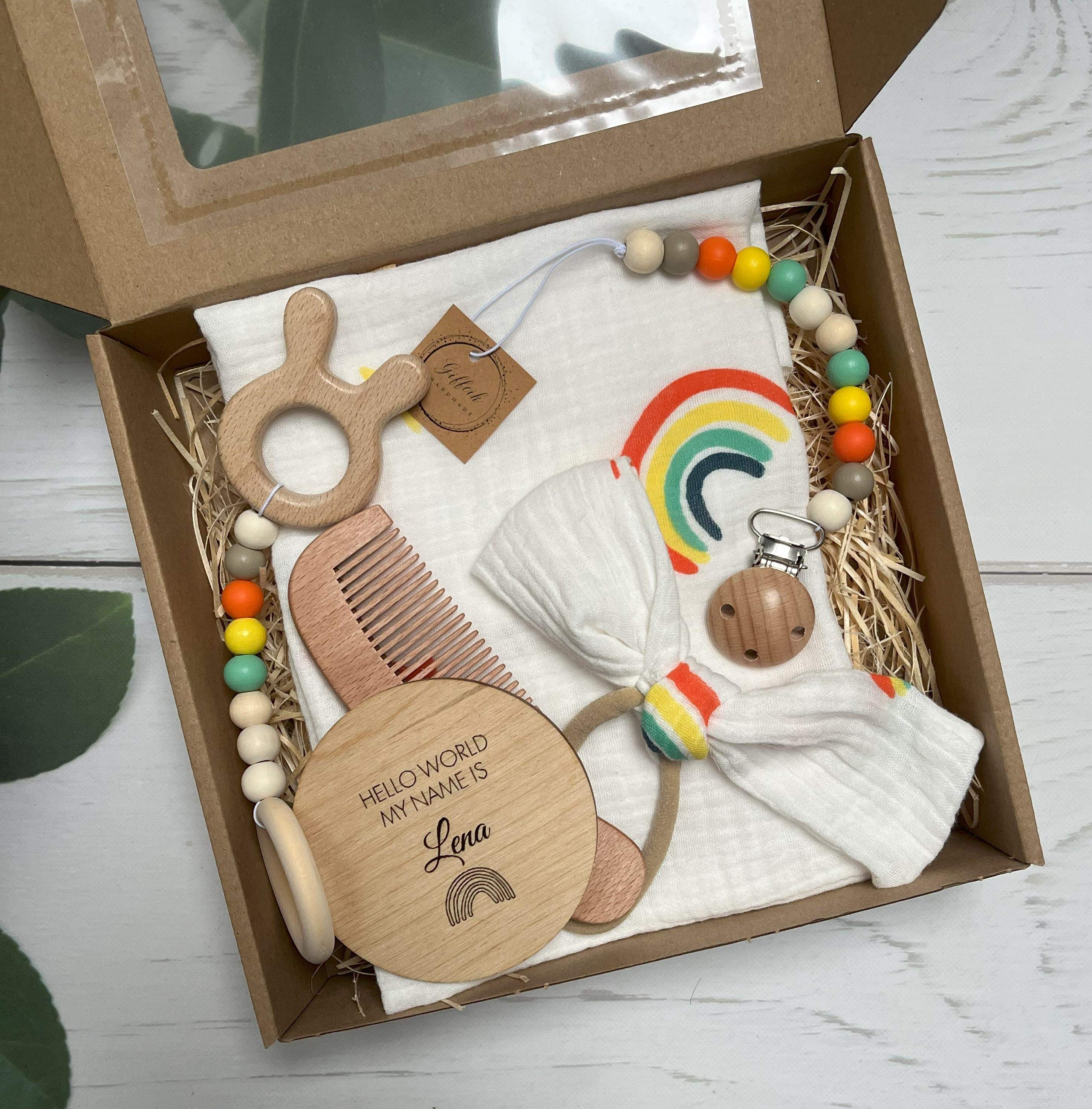Zestaw Okolicznościowy TĘCZA dla Małej Dziewczynki – NARODZINY / BABY SHOWER / CHRZEST / ROCZEK – GIFT BOX BABY